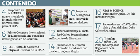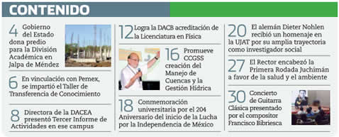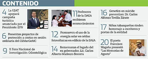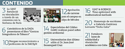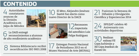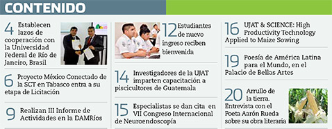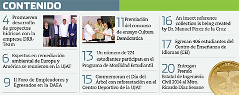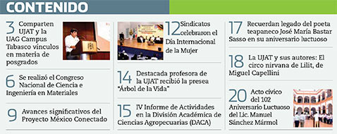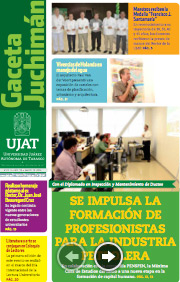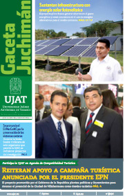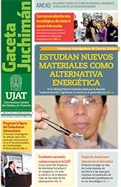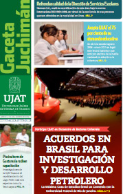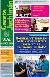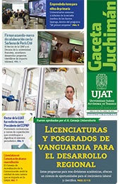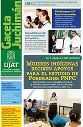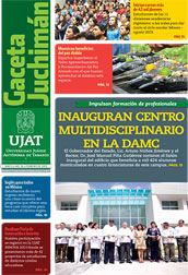 La Gaceta Juchimán es una publicación quincenal de la Dirección de Relaciones Públicas y Difusión de la Universidad Juárez Autónoma de Tabasco. Para cualquier información, dudas o sugerencias sobre los contenidos comunicarse al teléfono 3 14- 06-98 o enviar un correo electrónico a direccion.drp@ujat.mx.