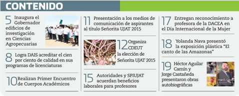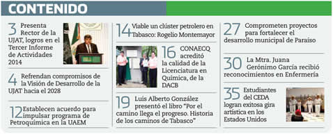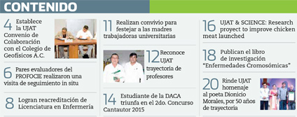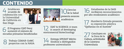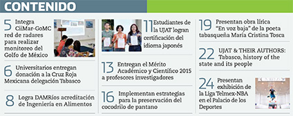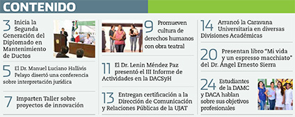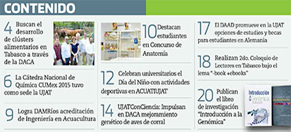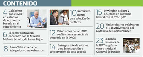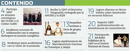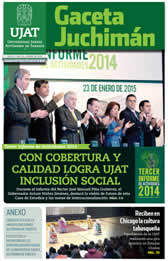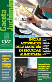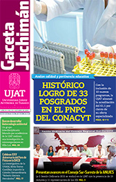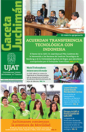 La Gaceta Juchimán es una publicación quincenal de la Dirección de Relaciones Públicas y Difusión de la Universidad Juárez Autónoma de Tabasco. Para cualquier información, dudas o sugerencias sobre los contenidos comunicarse al teléfono 3 14- 06-98 o enviar un correo electrónico a direccion.drp@ujat.mx.